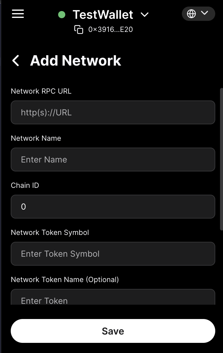 If for some reason the button should not work with your wallet, you can also add you Avalanche L1 manually. In particular, there are two fields that we care about: the Chain ID and the RPC Url; these fields are what will allow us to connect our wallets to AvaCloud. To start, open Core Wallet, head into the Networks tab, and click the + button, where you should see the following screen: